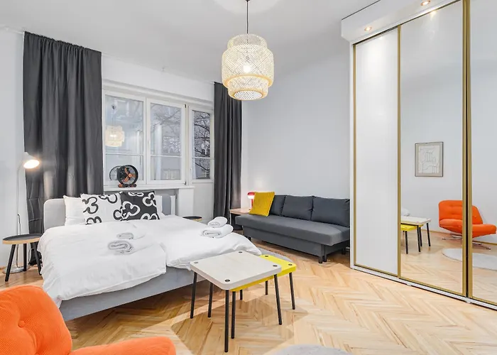 Situado no distrito de Sródmiescie em Varsóvia, o apartamento Wybrzeze Kosciuszkowskie 17 By Nyx Apart fica a 15 km do aeroporto de em Varsovia Chopin. Localizada a cerca de 5 minutos a pé da estação de metro de Centrum Nauki Kopernik, esta acomodação é composta por 1 quartos, 1 casas de banho e cozinha equipada.